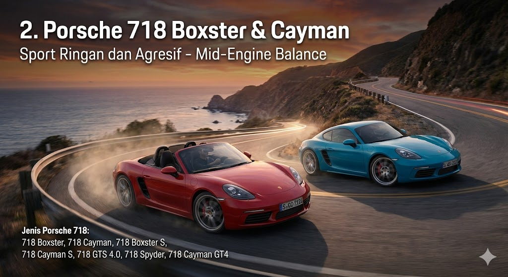 2. Porsche 718 Boxster & Cayman – Sport Ringan dan Agresif