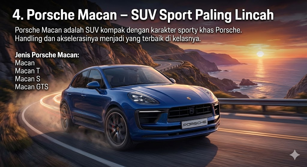 Macan ideal bagi pengguna aktif yang ingin SUV harian dengan rasa mobil sport.
